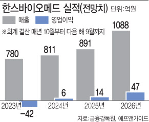 27일 금융정보업체 에프엔(Fn)가이드에 따르면 한스바이오메드는 올해(27기, 2024년 10월~2025년 9월) 매출 891억원, 영업이익 14억원을 기록할 것으로 예상된다. 이는 전년(26기) 매출 811억원, 영업이익 6억원 대비 큰 폭의 성장이다.